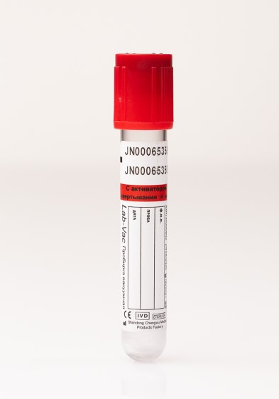 Пробирки для сыворотки покрыты сухим активатором образования сгустка для ускорения свертывания крови. Время свертывания от 10 до 30 минут.